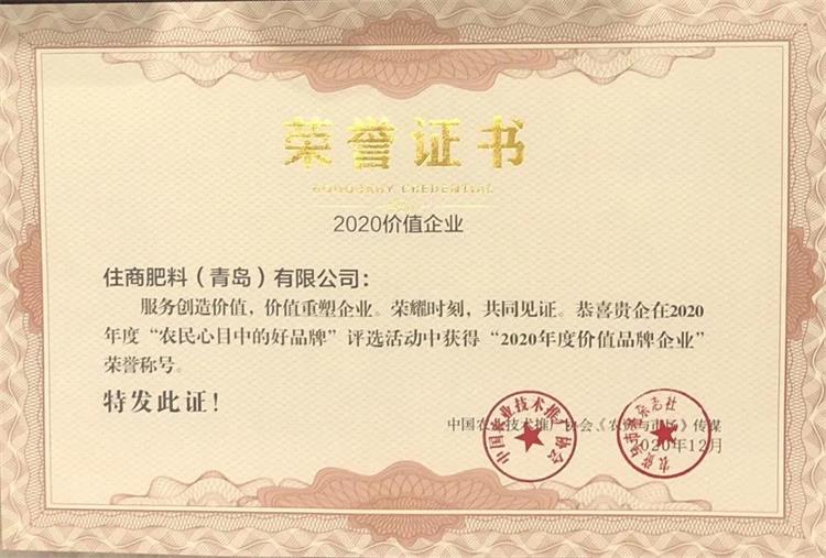 12月9日(ri)(ri)-10日(ri)(ri),由《農(nong)(nong)資與市場》傳媒主辦的(de)第23屆中(zhong)國(guo)農(nong)(nong)化(hua)行業領袖年度(du)(du)智慧峰會(hui)在(zai)西安(an)成功召(zhao)開(kai)。住商肥料受(shou)邀出席并榮獲“2020年度(du)(du)農(nong)(nong)民心(xin)目(mu)中(zhong)的(de)好品牌”之(zhi)“年度(du)(du)價值品牌”榮譽。