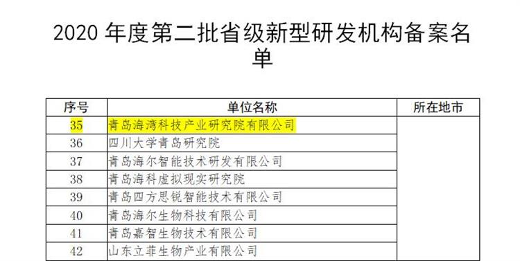 2020年12月(yue)31日,山(shan)東省(sheng)科學技術廳發布2020年度(du)第二(er)批(pi)省(sheng)級新型研(yan)發機構備案名單,海灣研(yan)究院成功獲批(pi)山(shan)東省(sheng)新型研(yan)發機構。
