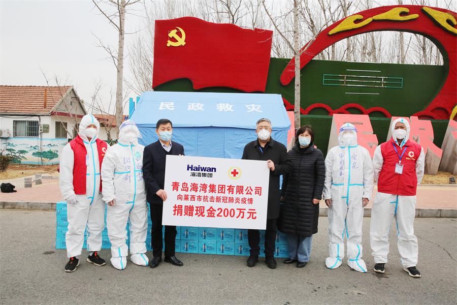 呂英志代表萊西(xi)市紅十(shi)字(zi)會(hui)接受海(hai)灣(wan)集團200萬元愛心捐款,并向海(hai)灣(wan)集團表達由衷的感謝,萊西(xi)全市人民有信(xin)心、有力量抗擊疫情、渡過難關。
